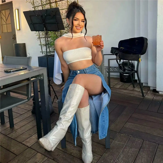 2024 Summer Midi Skirts Vintage Clothes Sexy Skirts For Women Blue Jeans Skirt High Waisted Denim Skirt Split Thigh Denim Skirt