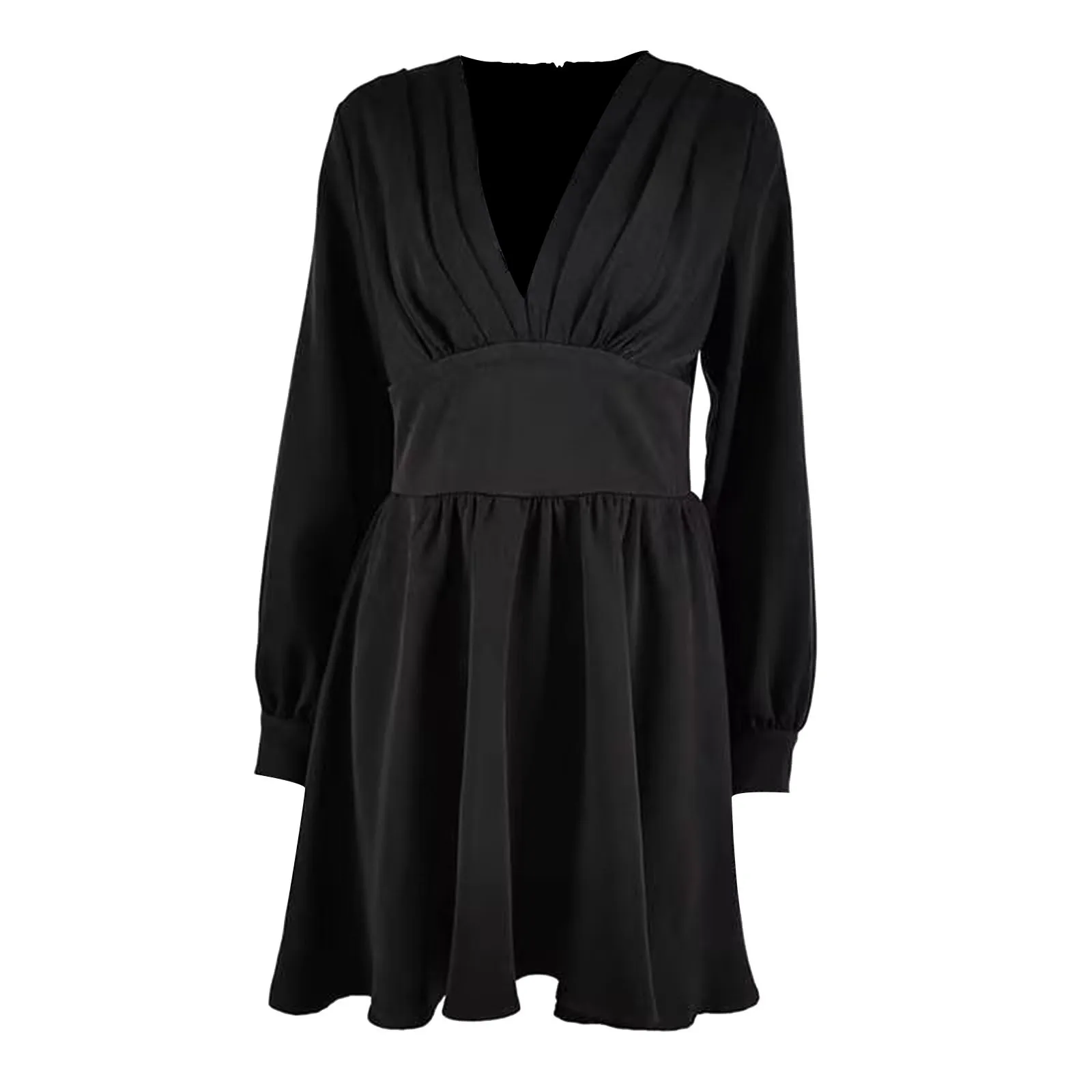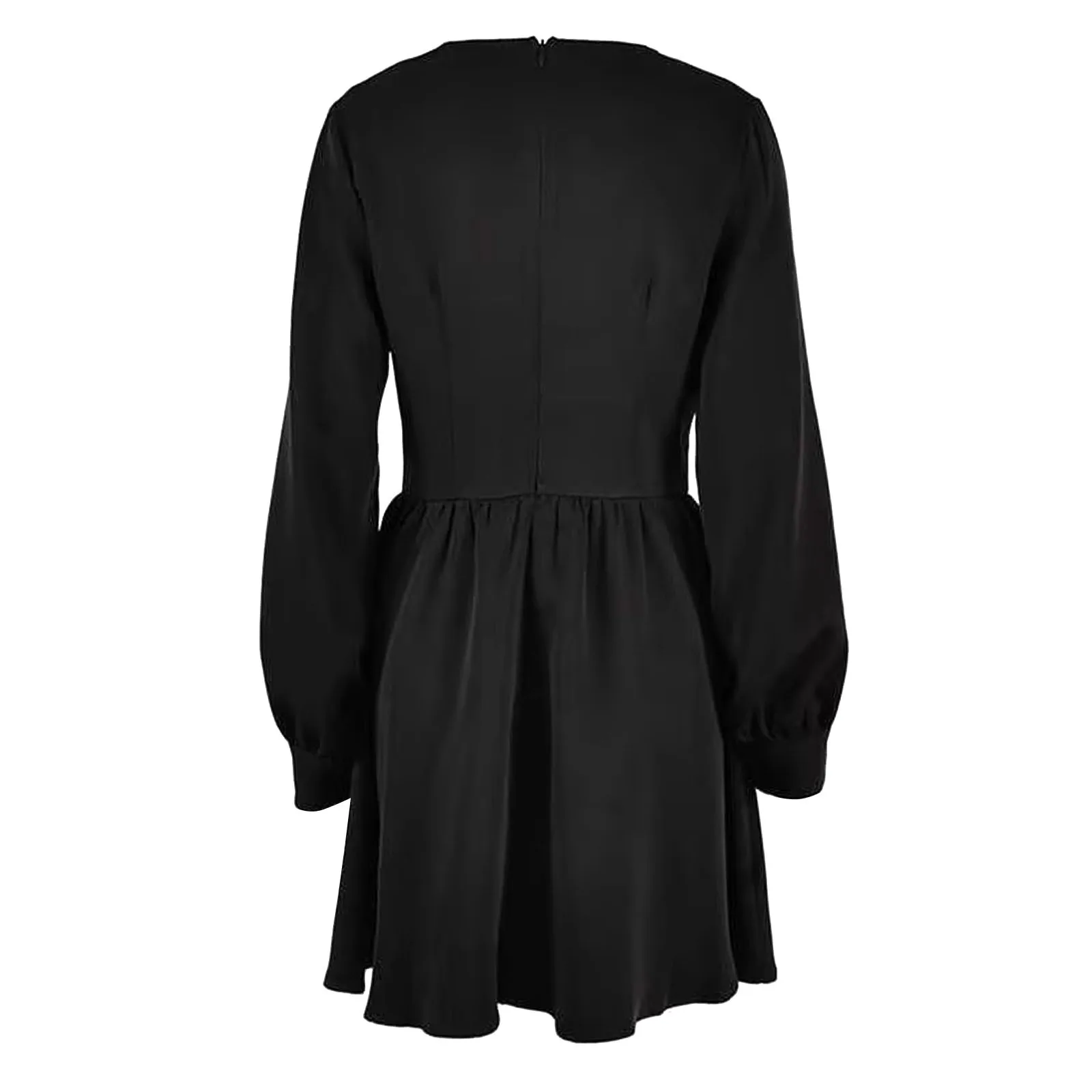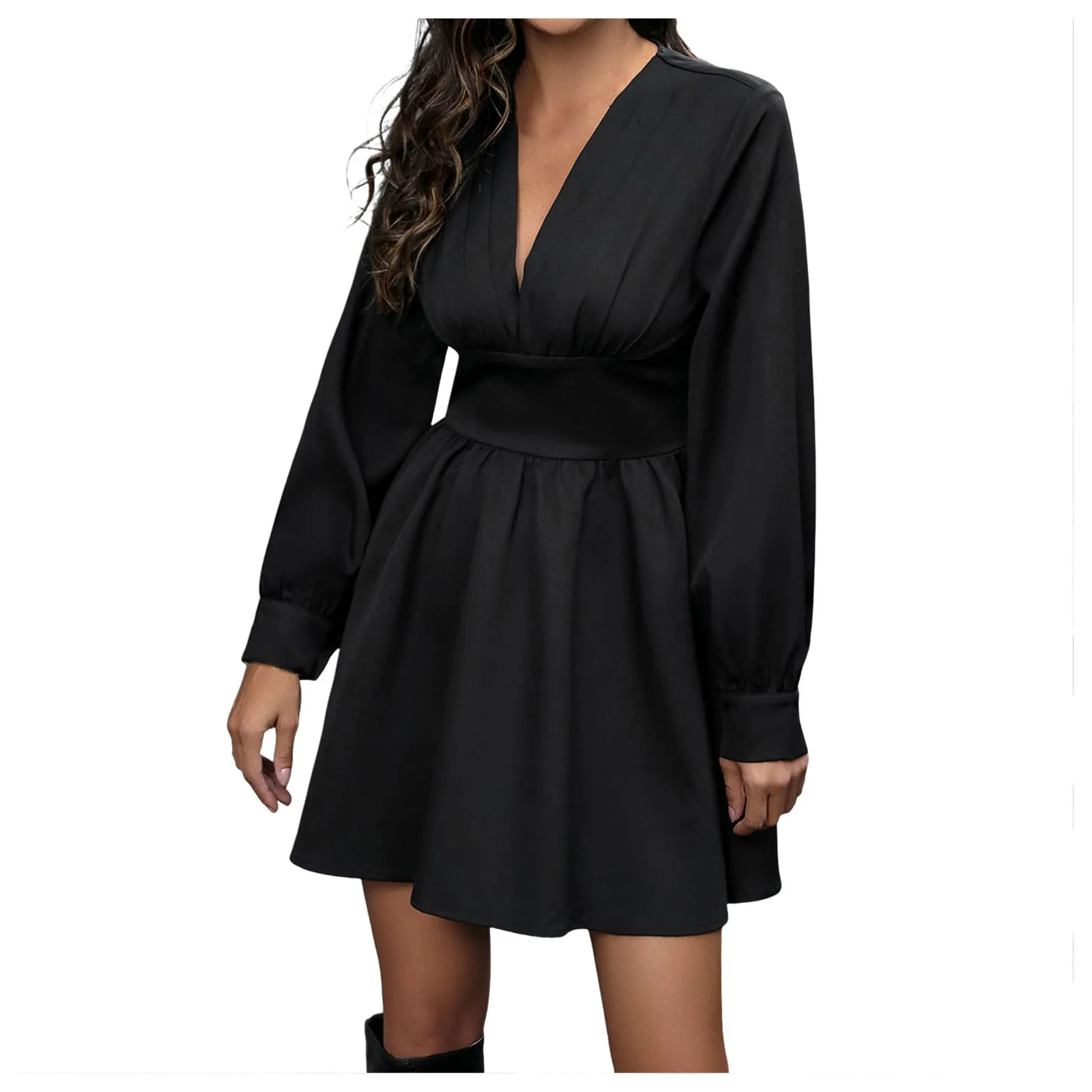 Elegant Deep V Neck Party Dress - Long Sleeves