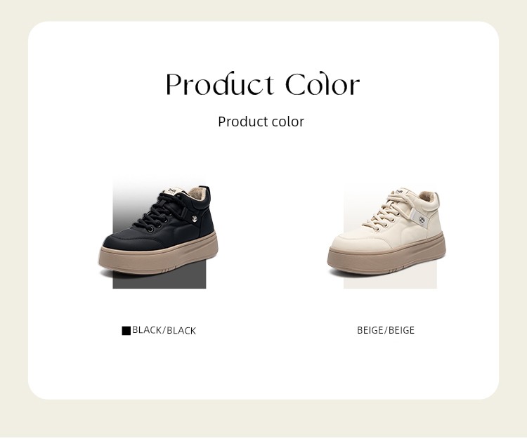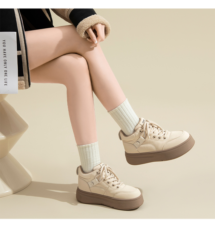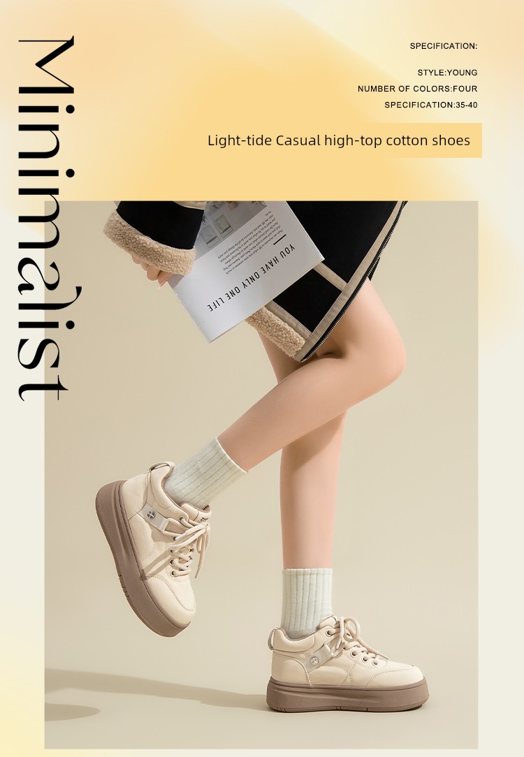 Step into comfort this season! πβ¨ What it is - Our 2024 Autumn and Winter Fleece-Lined High-Top Casual Shoes are designed for women who value warmth and style. With a thick bottom and soft cotton padding, these shoes ensure your feet stay cozy while making a fashion statement. π Why you need it - These shoes provide the perfect combination of comfort and style. Say goodbye to cold feet with their fleece lining! Problems they solve: - Keeps your feet warm in chilly weather - Offers excellent support with thick soles - Versatile design for casual outings or everyday wear π Why youβll love it: - The stylish high-top design pairs well with any outfit - Premium quality materials for durability and comfort - Easy to clean and maintain, ensuring long-lasting use π How to use it - Simply slip these shoes on for an instant style boost! Pair them with your favorite jeans or a cozy sweater for a chic, effortless look. β