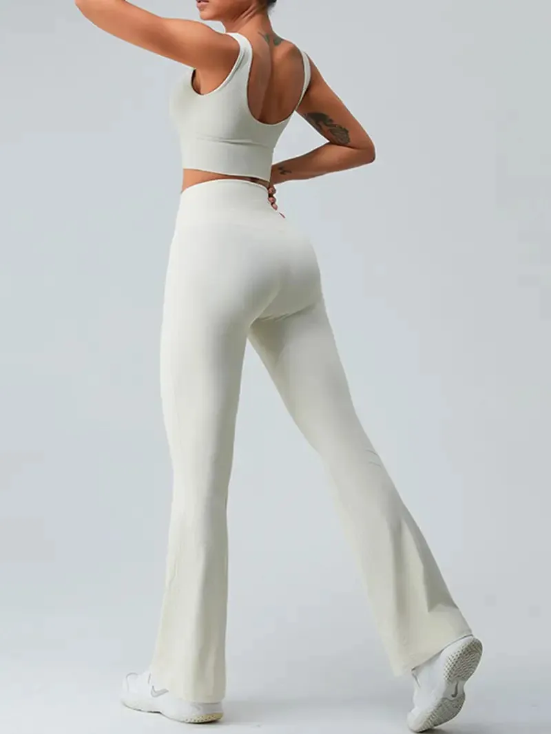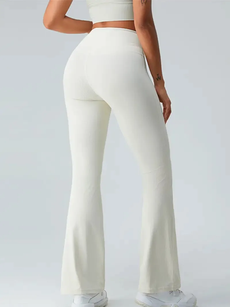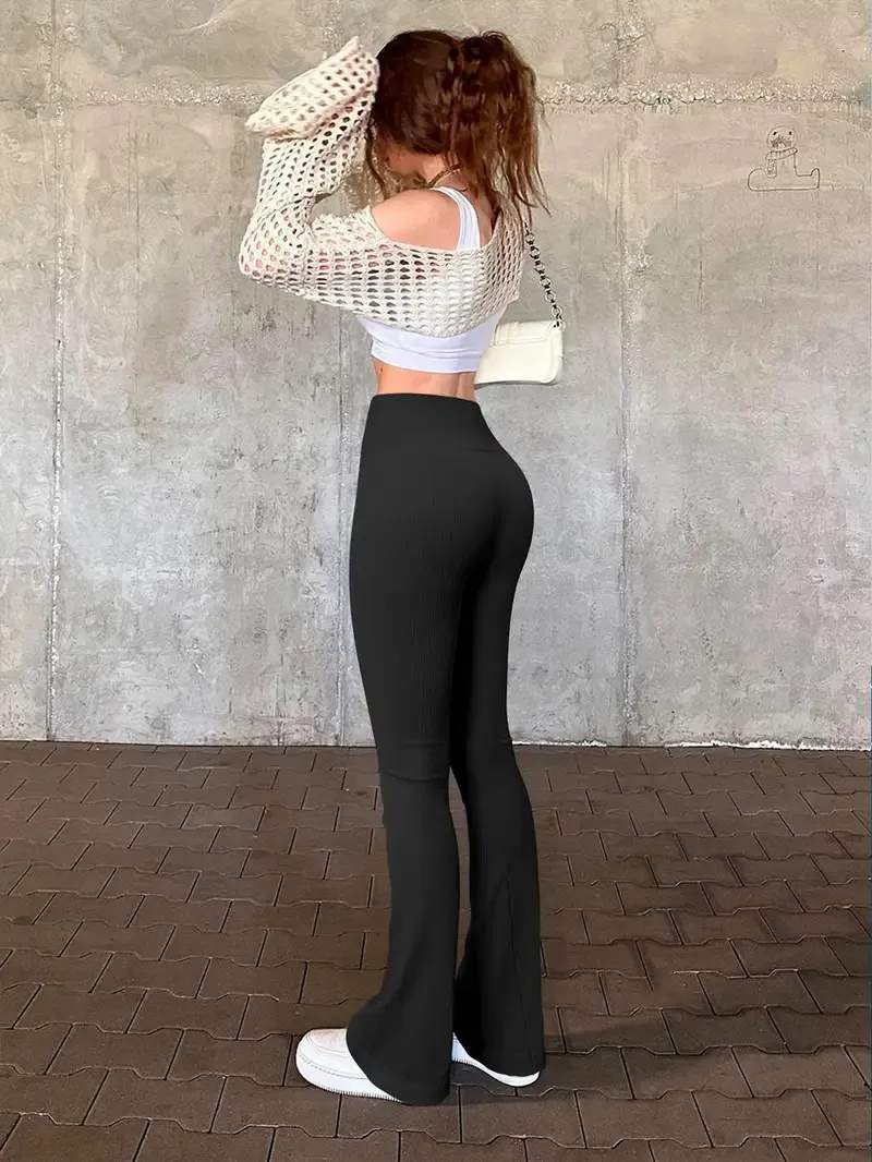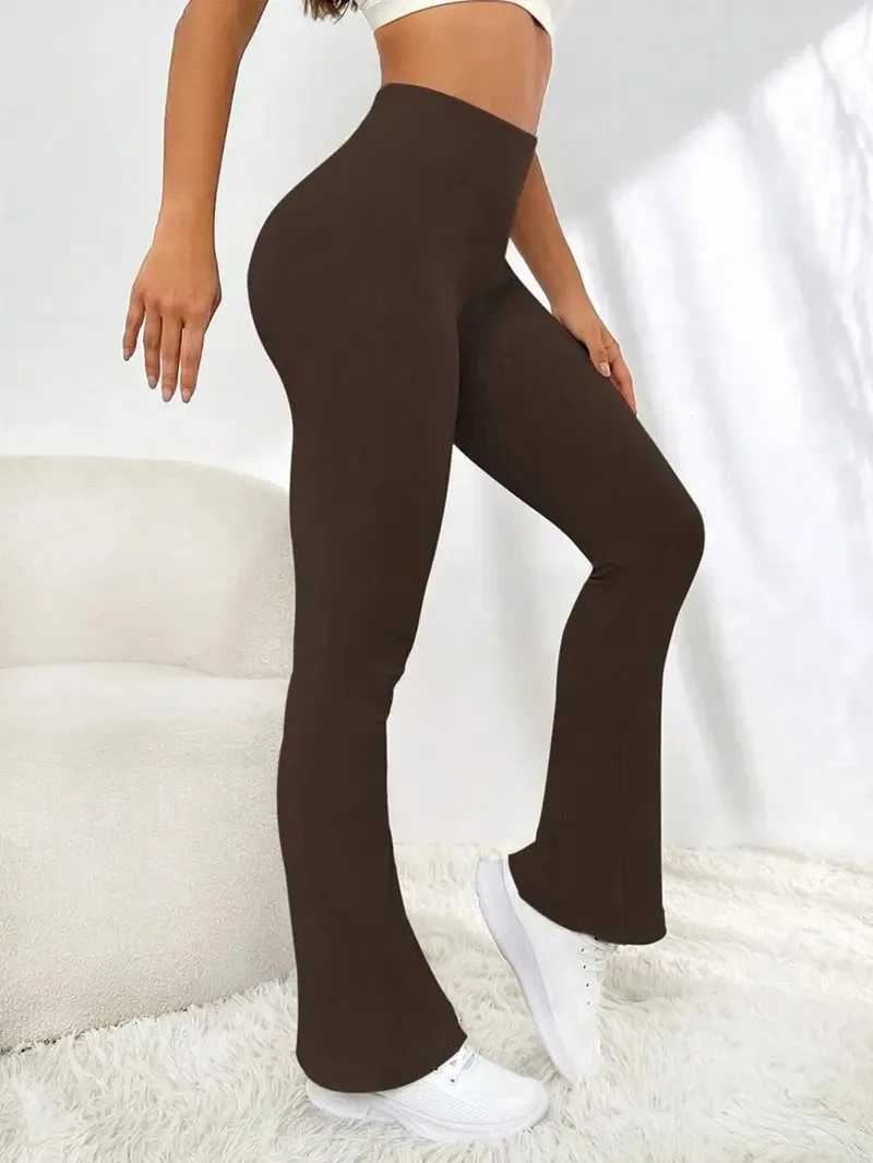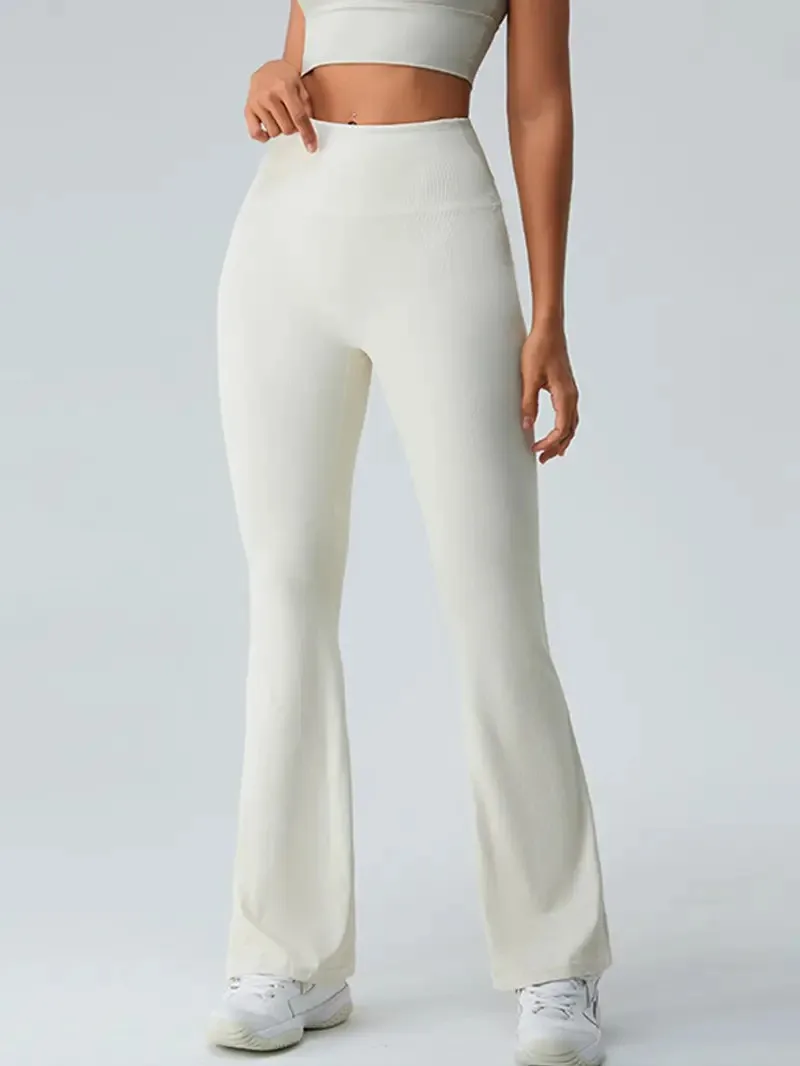 Elevate your workouts with our High Waisted Flared Yoga Pants, designed for ultimate comfort and style. Why you'll love it: - Premium stretch fabric for perfect flexibility. - Flared design for a trendy, flattering fit. - High waistband for tummy control and support. - Perfect for yoga, running, or casual outings. - Lightweight and breathable for all-day wear. Made from high-quality, breathable materials, these yoga pants offer both style and functionality. The solid color and threaded stretch fabric ensure they hold their shape while providing the comfort you need for any activity. Easily pair these versatile pants with your favorite sports bra or casual top for a chic, on-the-go outfit. Ideal for workouts or relaxing at home, don't miss out on this best seller! Grab yours today!