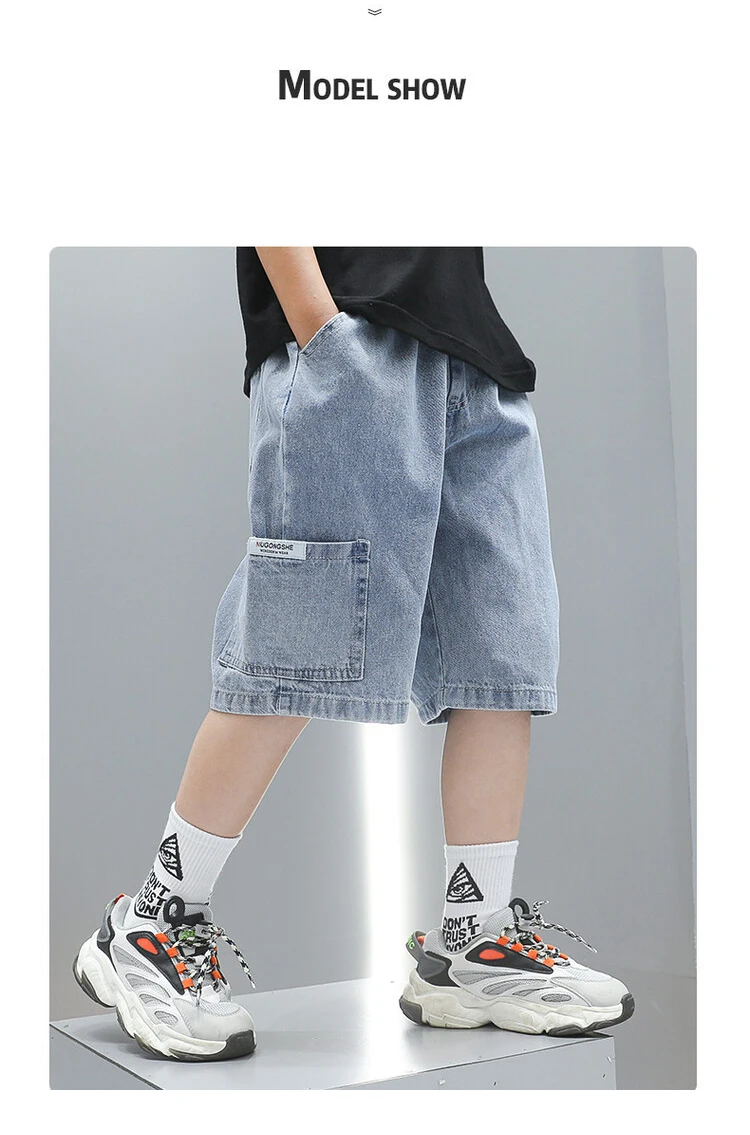 👖 What it is - Dress your kids in style with our trendy Kids Stretch Denim Shorts, designed for both boys and girls. These lightweight, breathable shorts feature a spliced denim design that perfectly blends comfort and fashion, making them ideal for everyday wear or special occasions. 🌟 Why you need it: - Versatile: Great for mixing and matching with various outfits. - Comfort: Constructed with an elastic band for a perfect fit that grows with your child. - Practical: Includes small pockets for personal storage, perfect for keys or snacks. - Durable: Made from high-quality cotton denim that withstands playtime wear and tear. ❤️ Why you love it: - Fashionable Design: The Korean-inspired style keeps your child trendy. - Easy Care: Machine washable and easy to maintain, ensuring it looks great wear after wear. - Perfect Fit for Growing Kids: Available in multiple sizes to fit ages 4 to 10 comfortably. 🌈 How to use it: - Simply put on and adjust the elastic band to ensure comfort. - Pair with a t-shirt or shirt for a stylish look. - Ideal for school, playdates, or family outings. 💖 Guarantee/Call to Action: Our premium denim shorts come with a satisfaction guarantee. If for any reason you're not completely happy with your purchase, reach out for a resolution. Upgrade your child's wardrobe with these stylish shorts - order now and let your little ones enjoy the perfect blend of comfort and fashion!