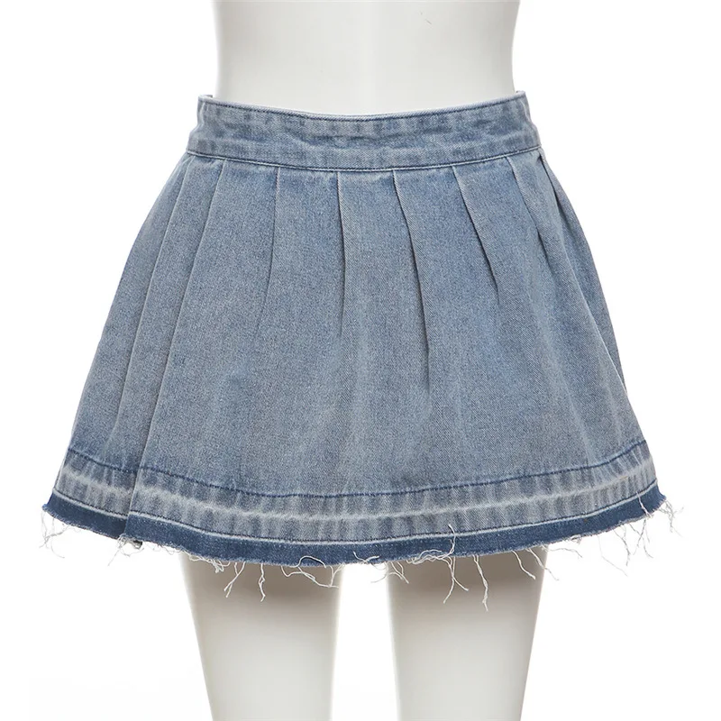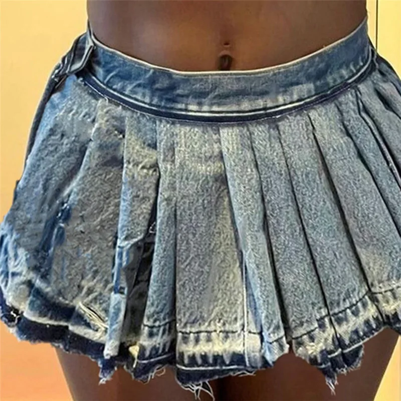 Streetwear Clothes Fashion Jeans Skirts For Women Mini Skirts High Waist Club Outfits Design Summer Blue Pleated denim Skirts