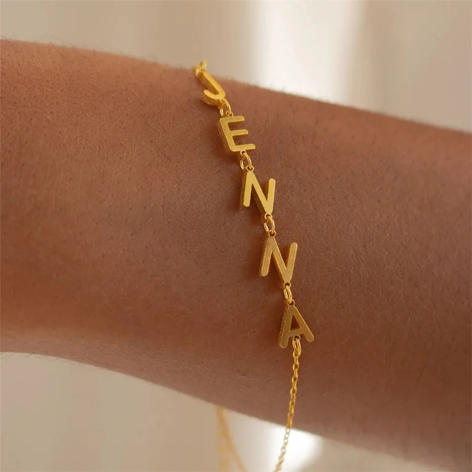 SUNIBI Stainless Steel Customized Name Bracelet for Women Girls Gold Color Chain Letter Personalized Charm Bracelets Jewelry