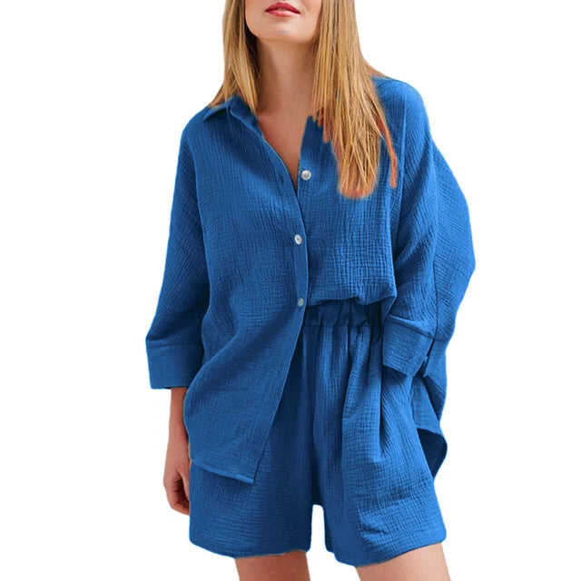 🌼 Refresh your wardrobe with our Women's Spring Cotton Linen Casual Set, featuring a stylish short-sleeve button-up shirt and comfortable drawstring shorts! This chic set is designed for ultimate comfort and breathability, making it the perfect outfit for any casual occasion. ✨ Why you need it: - Made from premium cotton linen for a soft and relaxed fit. - Versatile solid color options to easily mix and match. - Ideal for warm weather, keeping you cool and stylish. - Irregular hem and turndown collar for a trendy look. 💖 Why you love it: - This best-seller comes in various sizes (S to XL) to fit every body type. - Effortless styling—just throw it on for an instant chic outfit! - Drawstring shorts provide a customizable fit for all-day comfort. 🌟 How to use it: - Pair with sandals for a casual day out or dress it up with accessories for a stylish evening look. ✅ Our guarantee: - Experience unparalleled comfort and style with our Women's Spring Cotton Linen Casual Set. If you have any quality issues, contact us for a quick resolution. Shop now and revamp your spring wardrobe today!